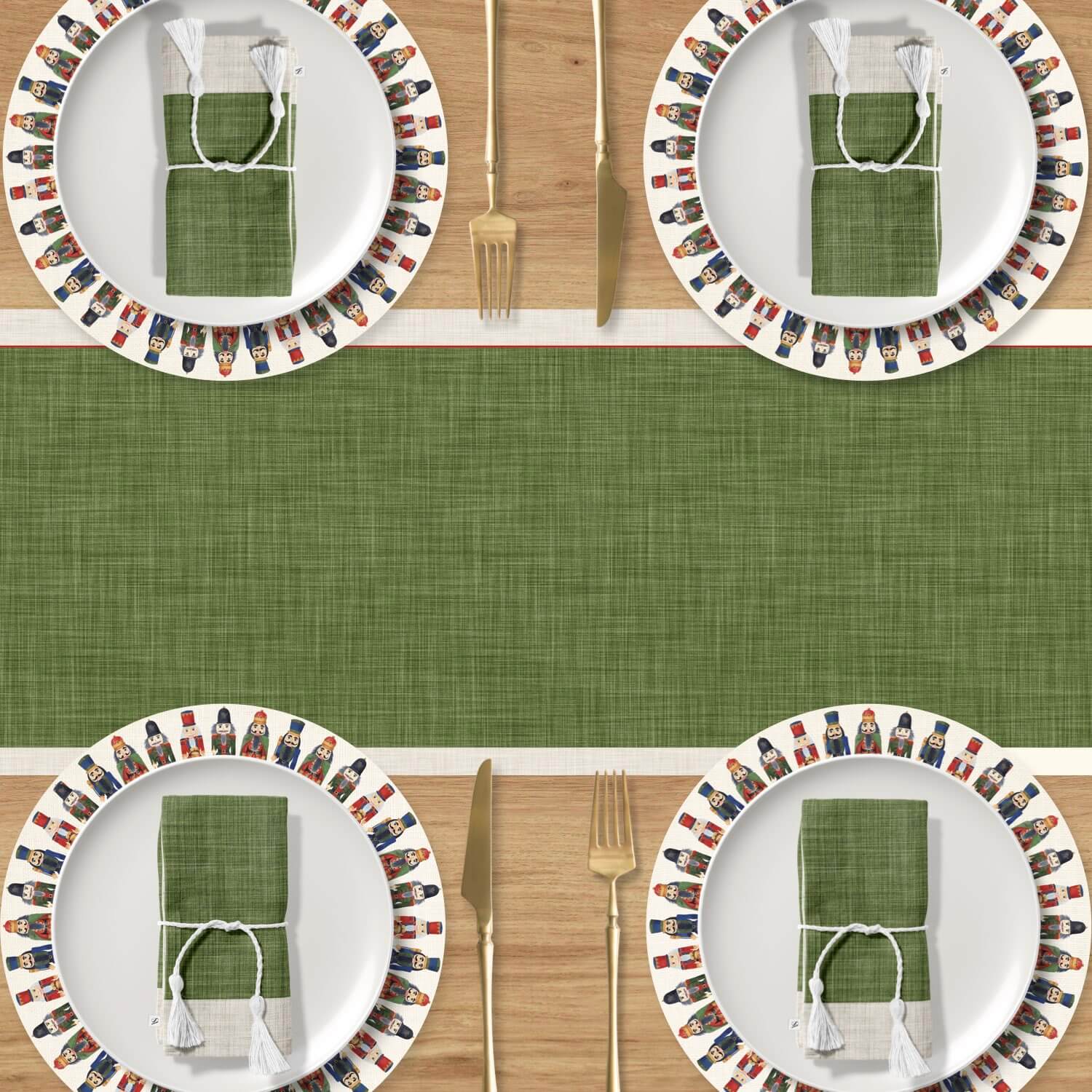 El camino de mesa Earth Moss Linen destaca por su tono verde musgo y borde marfil, evocando la calma y frescura de la naturaleza. Aporta un toque orgánico y sofisticado a cualquier mesa.