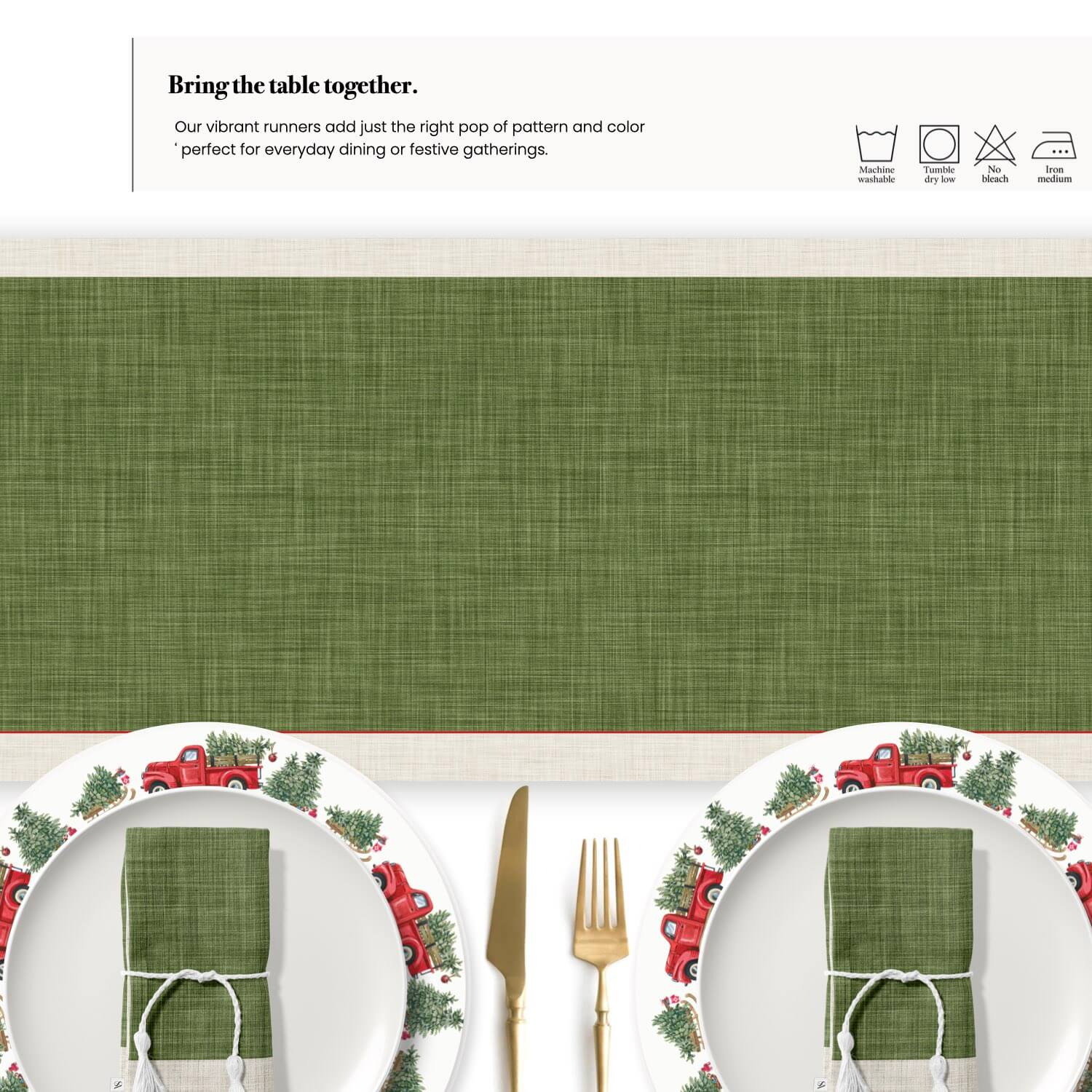 • El camino de mesa Earth Moss Linen destaca por su tono verde musgo y borde marfil, evocando la calma y frescura de la naturaleza. Aporta un toque orgánico y sofisticado a cualquier mesa.