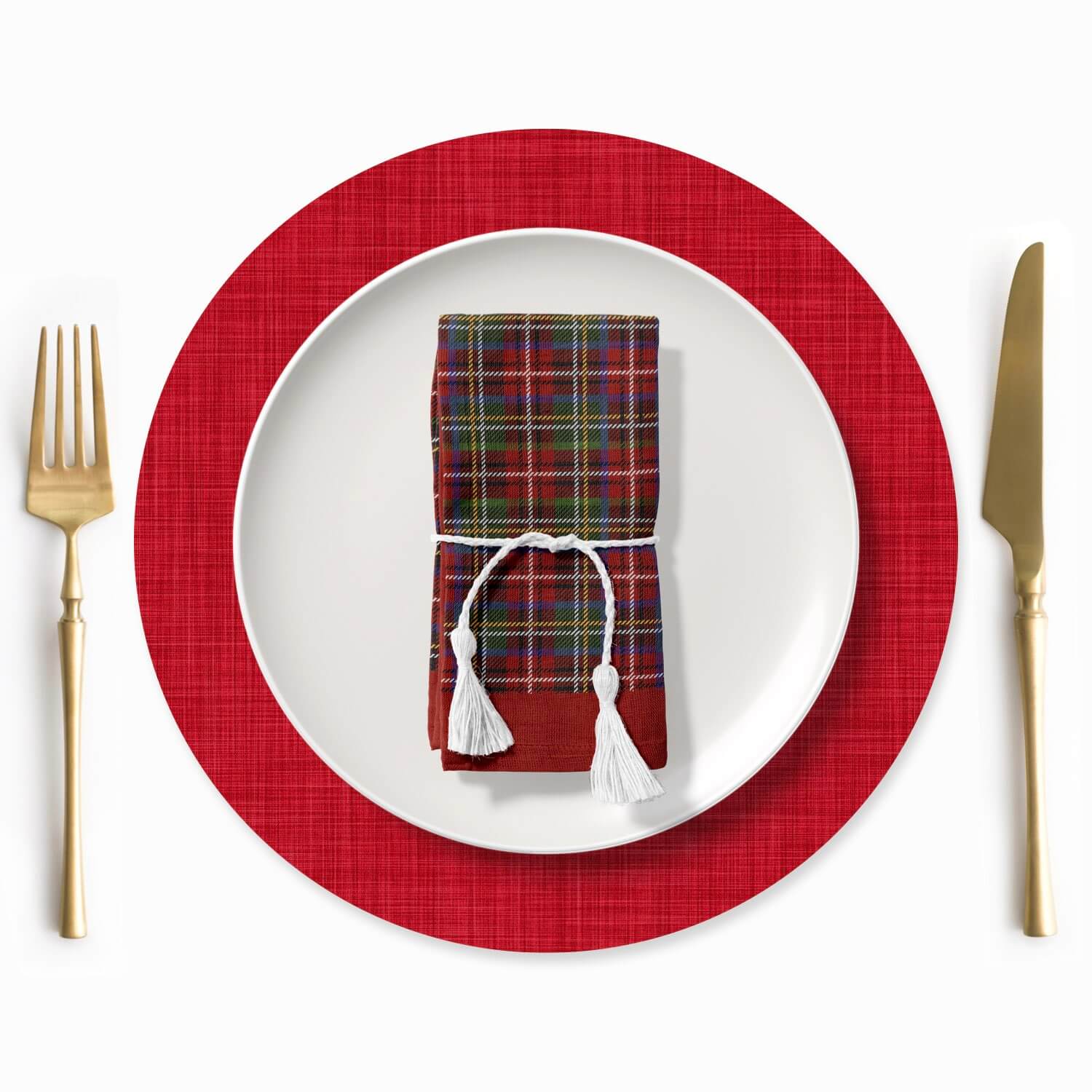 Colorida y tradicional, esta servilleta presenta un diseño tartán en tonos rojos, verdes y azules que llenan la mesa de espíritu festivo. Ideal para celebraciones navideñas, combina calidez, estilo y el encanto clásico de las reuniones familiares.