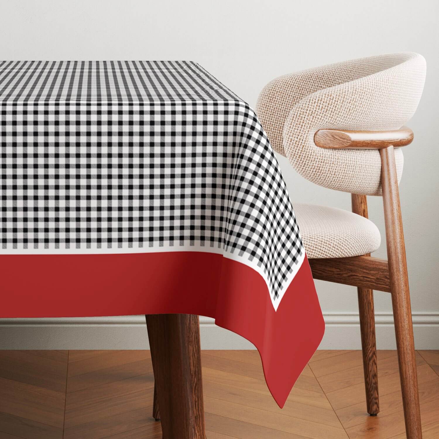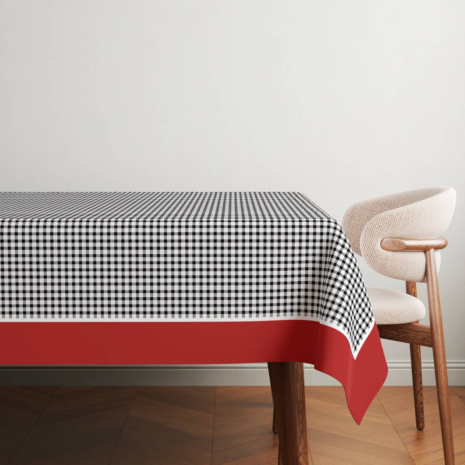 Nuestro mantel Country Checkers combina la elegancia atemporal de los cuadros en blanco y negro con un borde rojo vibrante que añade el toque festivo perfecto. Su diseño limpio, cálido y versátil transforma cualquier mesa en un espacio acogedor, ideal tanto para reuniones familiares como para celebraciones especiales. Es ese tipo de mantel que nunca pasa de moda y hace que cada comida se sienta más especial.