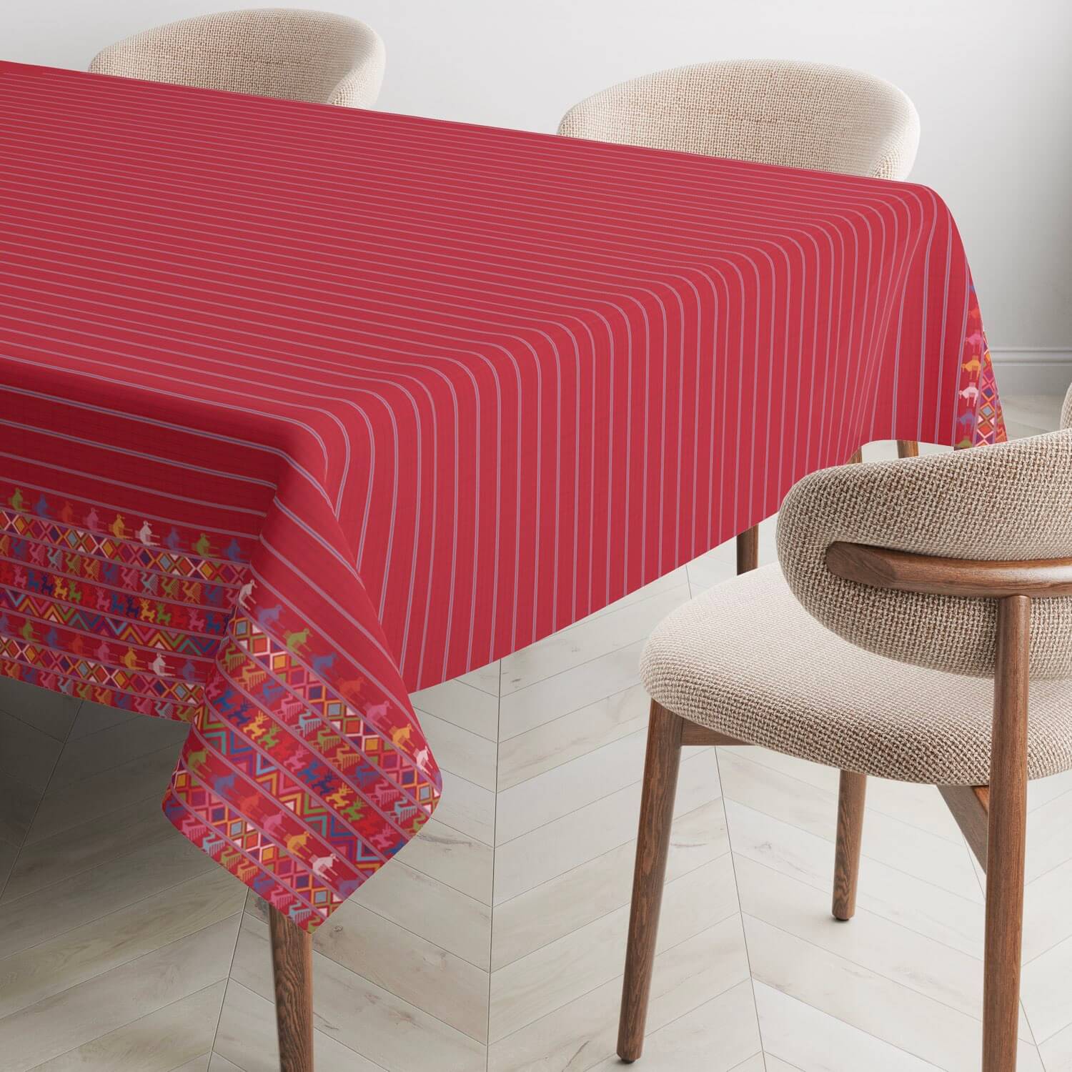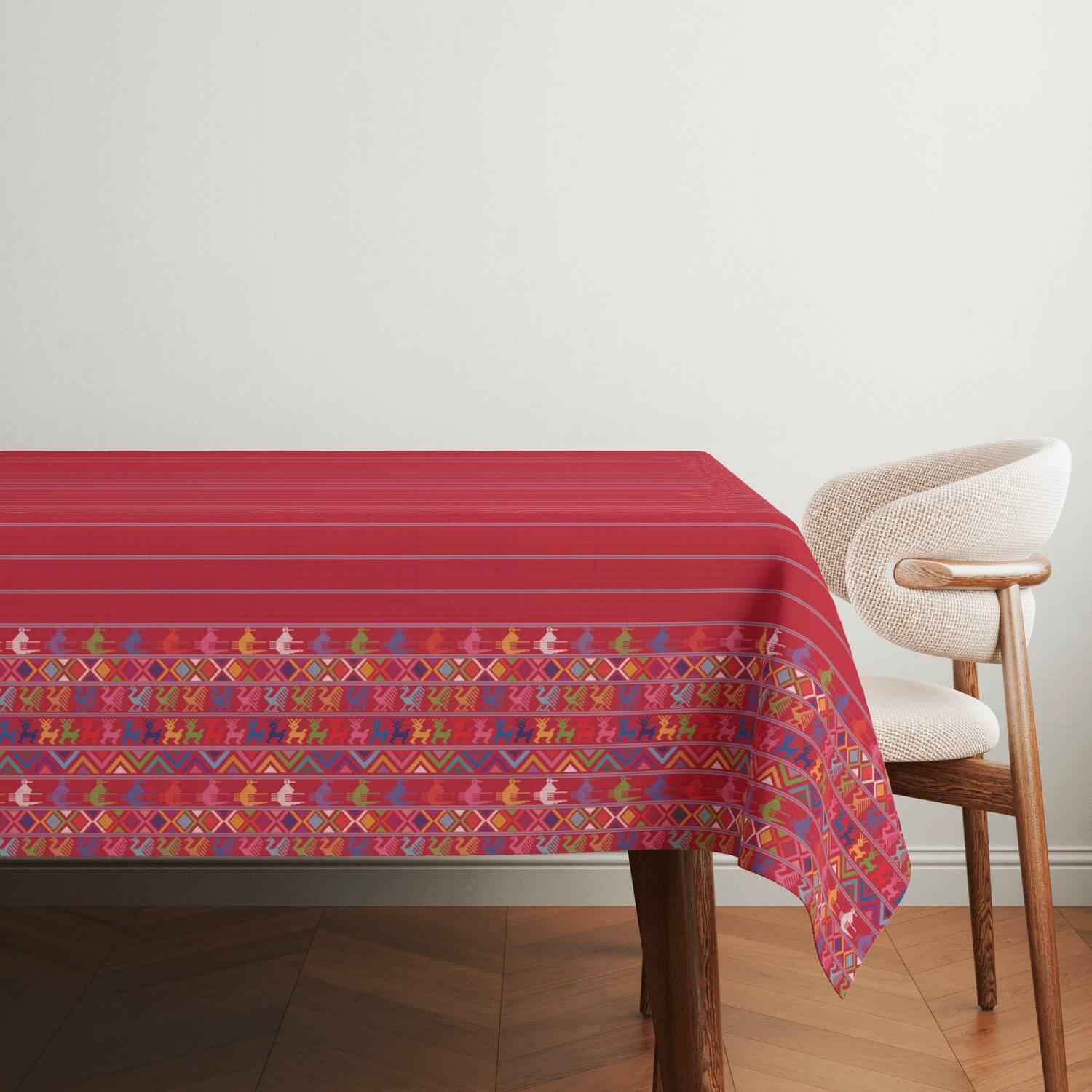 Convierte cada comida en una celebración de color con nuestro Mantel Atitlán. Inspirado en las ricas tradiciones textiles del Lago de Atitlán, combina rojos intensos, tonos coral y patrones geométricos multicolor con hileras de animales icónicos. El fondo presenta delicadas rayas tonales que aportan profundidad y movimiento, mientras el borde detallado añade textura y un toque festivo.