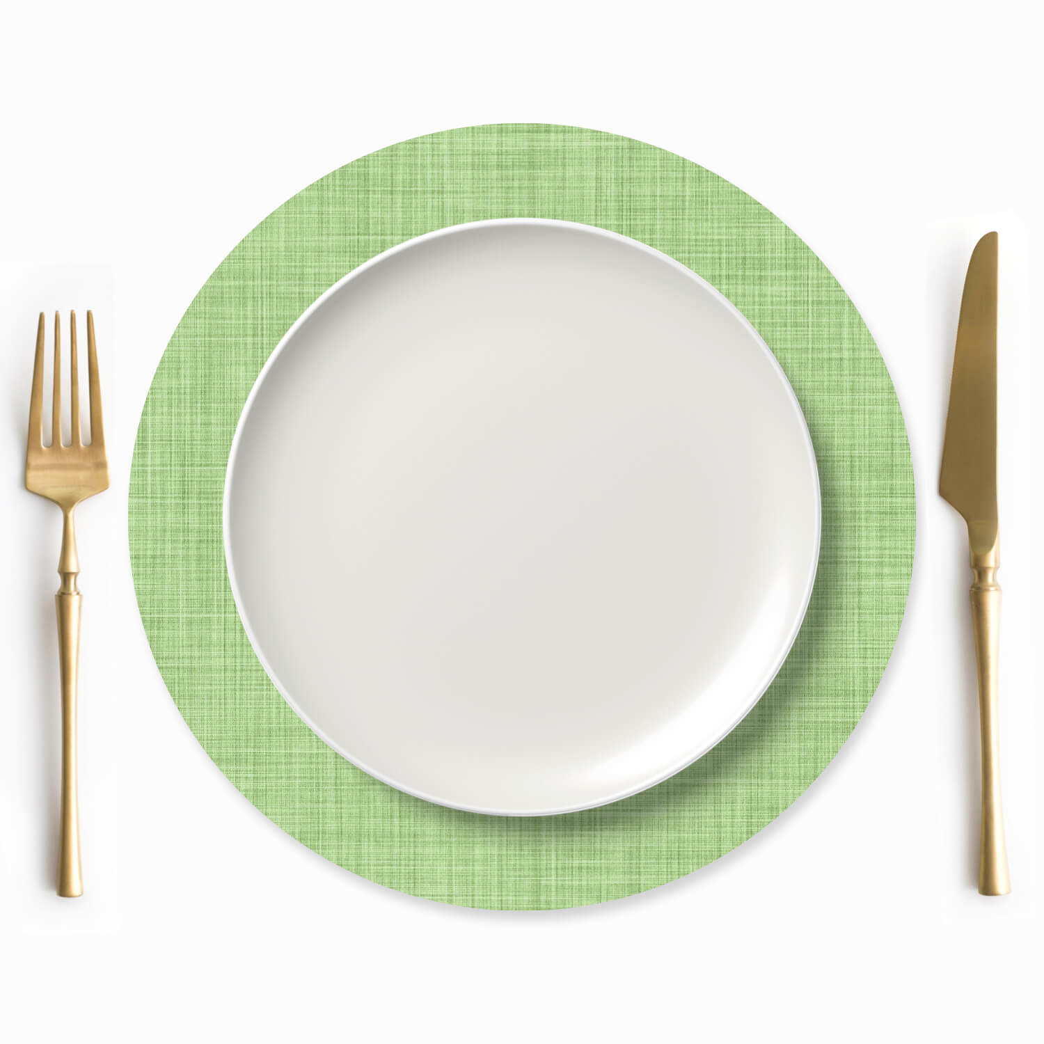 Refresca tu mesa con nuestra Funda para Plato Base Minted Linen. Con una sutil apariencia tejida y un suave tono verde, este diseño evoca las mañanas de primavera y la frescura de las hierbas recién cortadas. Elegante, serena y versátil, aporta un toque inspirado en el jardín a cualquier ocasión.