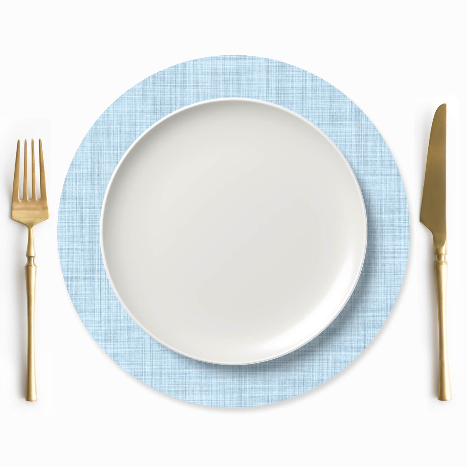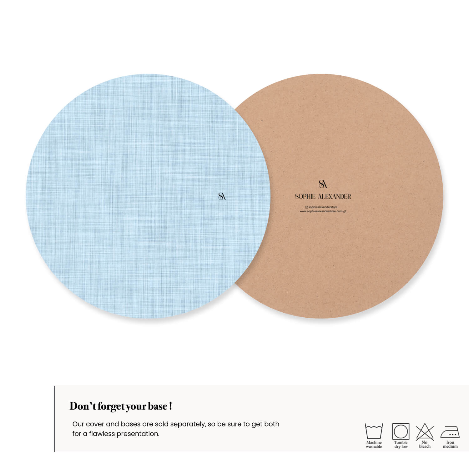 Ligera, fresca y naturalmente encantadora, nuestra Funda para Plato Base Sky Linen aporta un suave tono azul a tu mesa. Su diseño entretejido imita la textura del lino real, ofreciendo una base versátil para cualquier plato y ocasión, desde el desayuno hasta las celebraciones especiales.