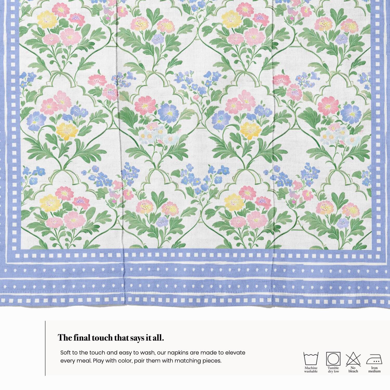 Nuestras servilletas están diseñadas para facilitar la limpieza y el cuidado diario. Son lavables, reutilizables y perfectas para el uso diario, combinando practicidad y diseño en cada comida.